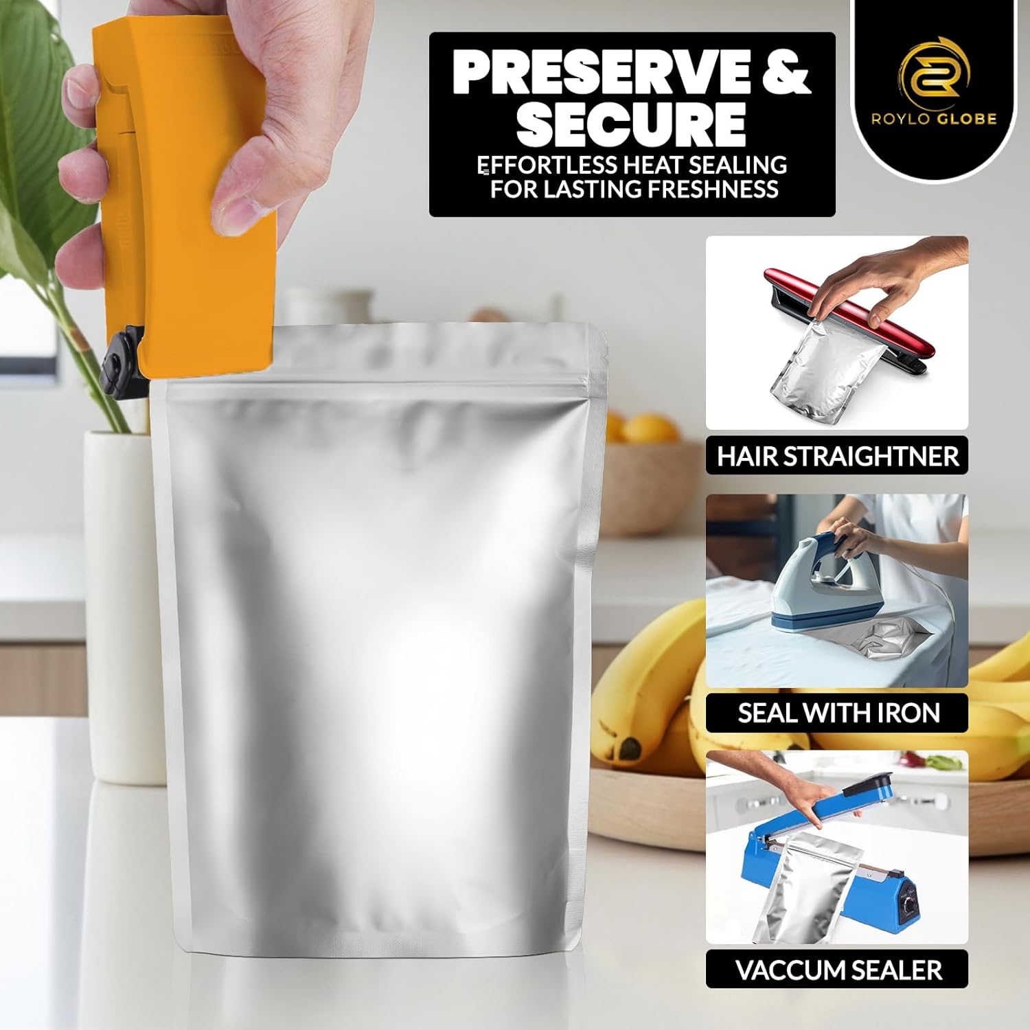 - Premium triple-layer design (PET + Aluminum Foil + PE) blocks air, light, and moisture.